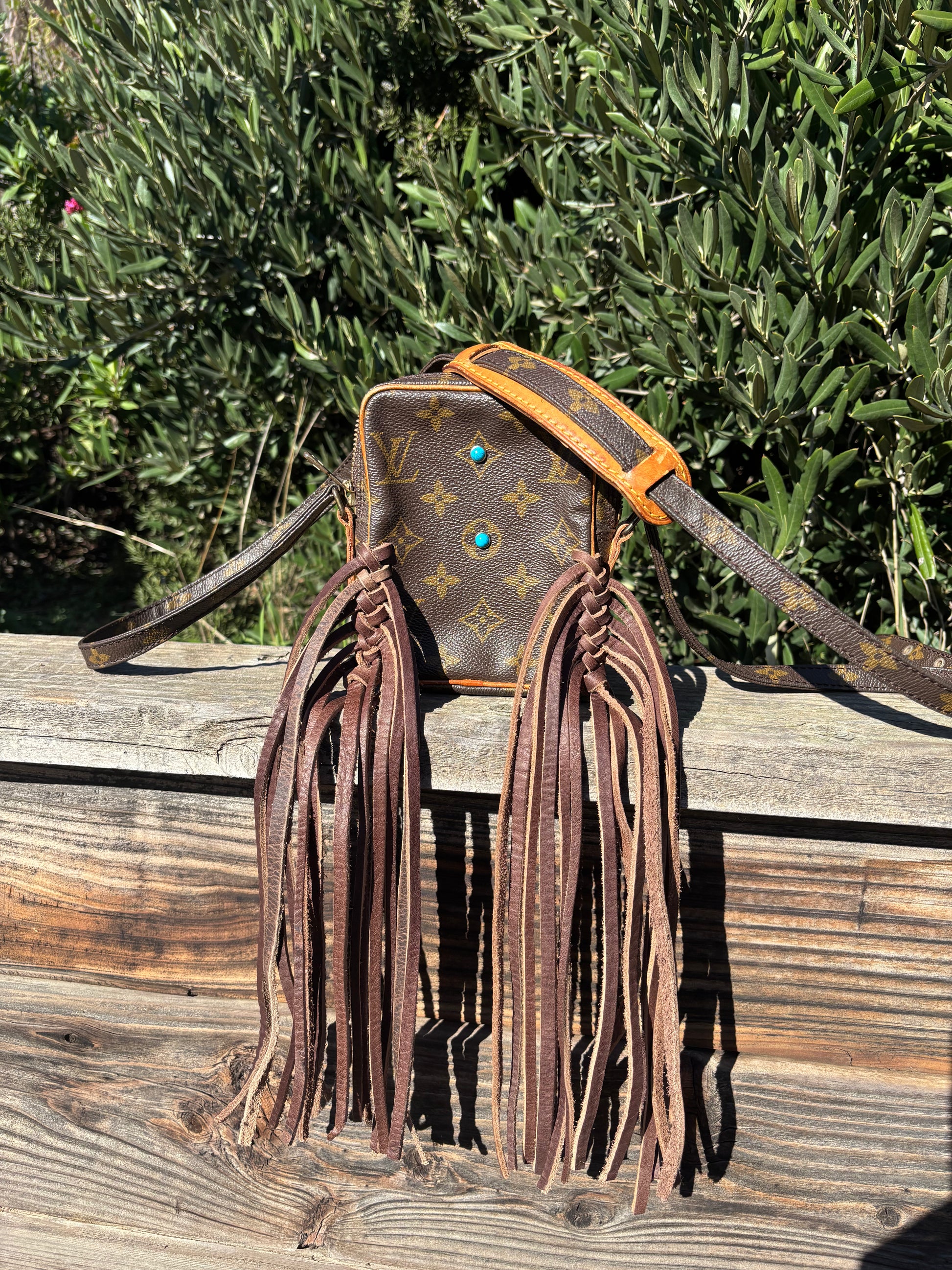 I’ve added 100% authentic leather fringe for a unique, stylish touch. The purse is compact and perfect for keys, a small wallet, and cash.